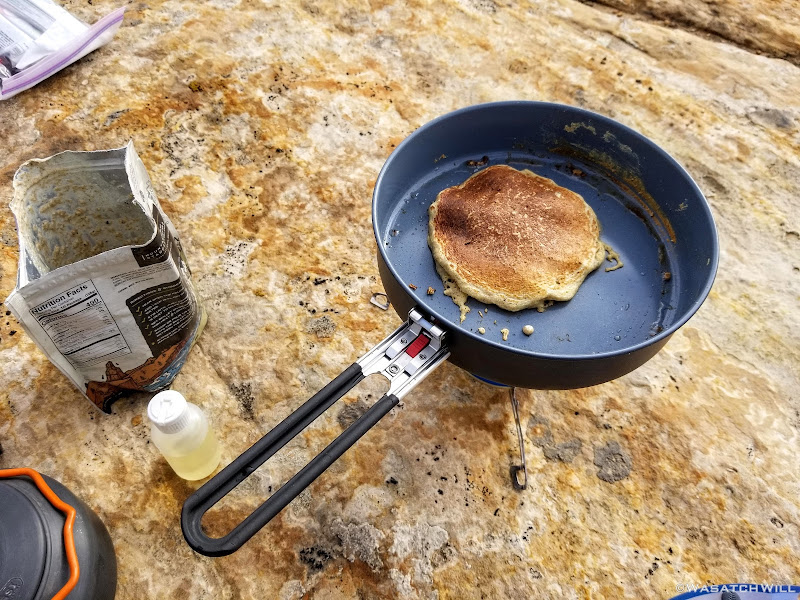 After having my fill of the a.m. golden hour, I set about getting breakfast going. Again, I'd put our fry pan to work and cooked up some pancakes.
