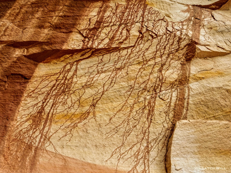 Also along the wall of rock art is an interesting pattern of organic looking streaks of red coursing through the rock.