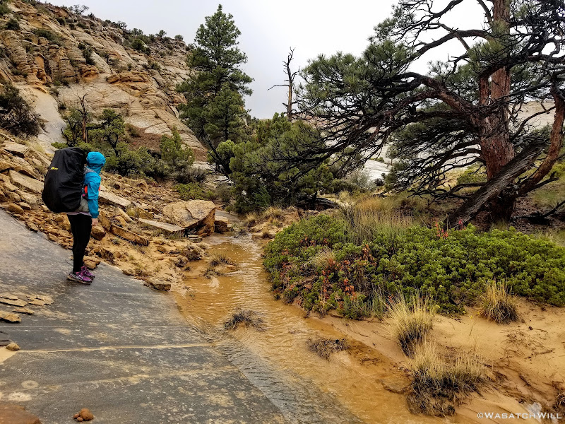 It was a magical feeling seeing the clouds, the sunlight, and all the freshly fallen rain combine to put on such a show across this otherwise arid desert landscape. Once again, it was tempting to set up camp along this stretch, this time with abundant water sources, but to keep the next day's hike out shorter, we chose to keep moving on.