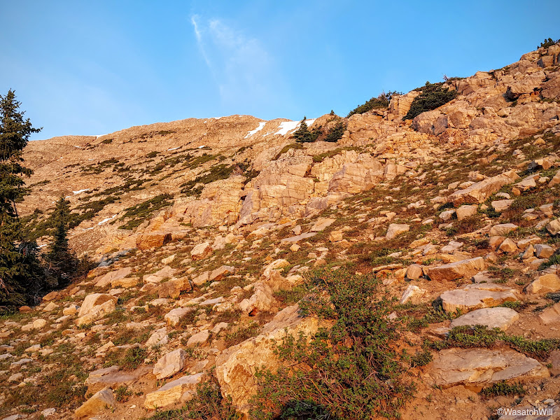 It was almost tempting to just call it good there. I didn't see how I could top that experience of quiet and peaceful solitude, pondering on the joys and blessings of life. The sun was now fully above the horizon and the colors faded and that made it easier to get up and continue up to the summit.