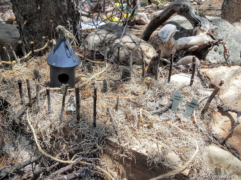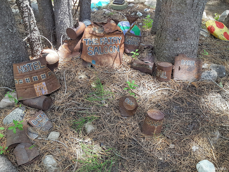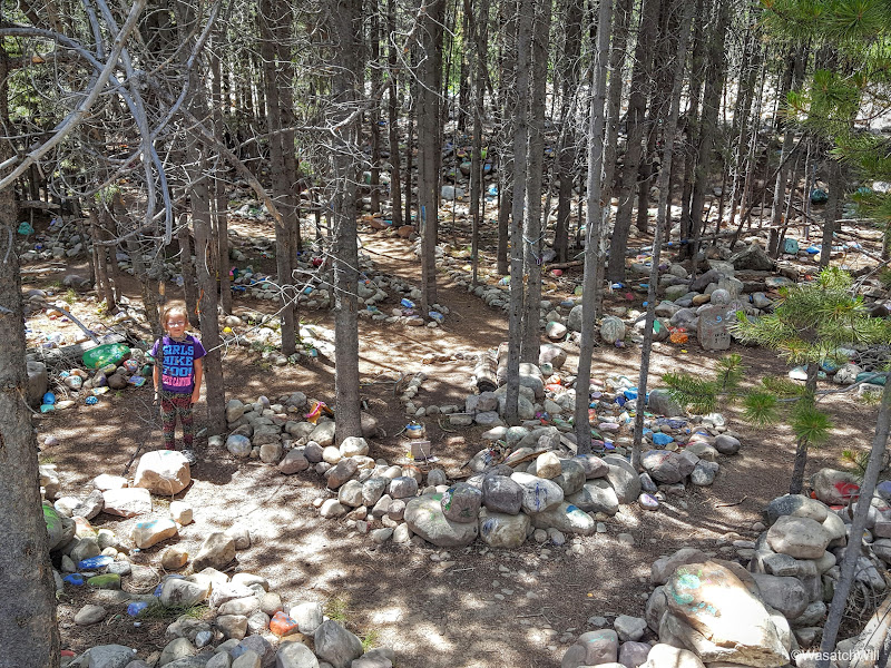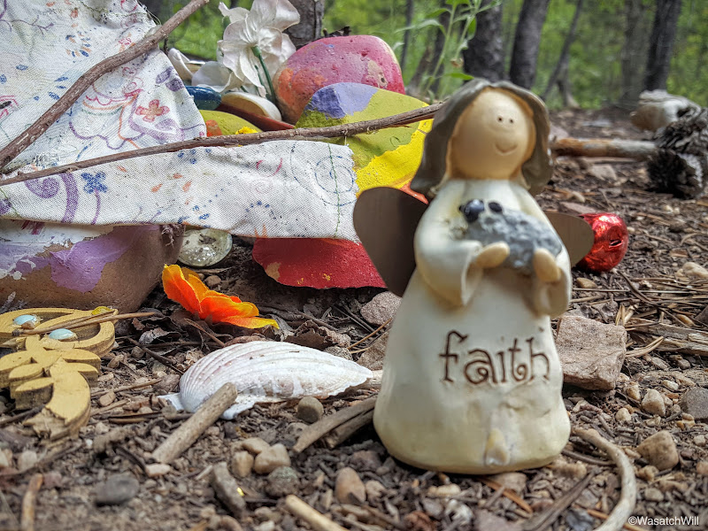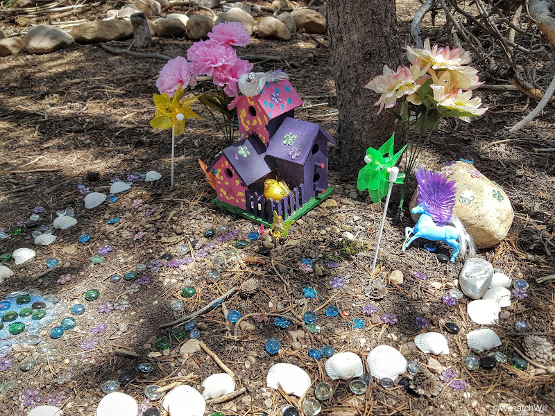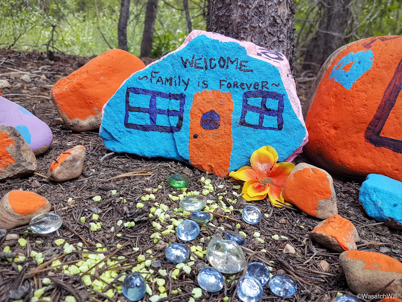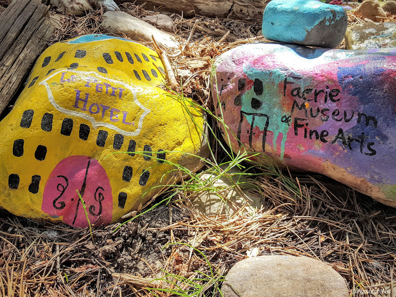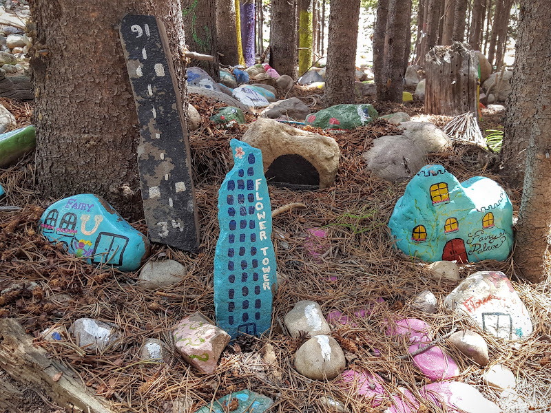 We had intended to paint some rocks at our home to bring up and add to the collection, but ran out of time with all of our other preparations we had to make. Inspired by some other displays that had been created out of nothing but natural materials there, our kids found a spot on the outer edge to build their own little fairy house.