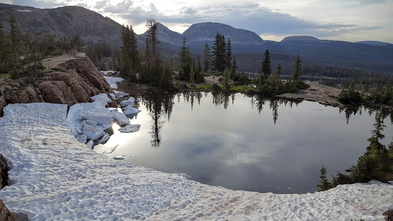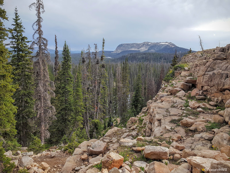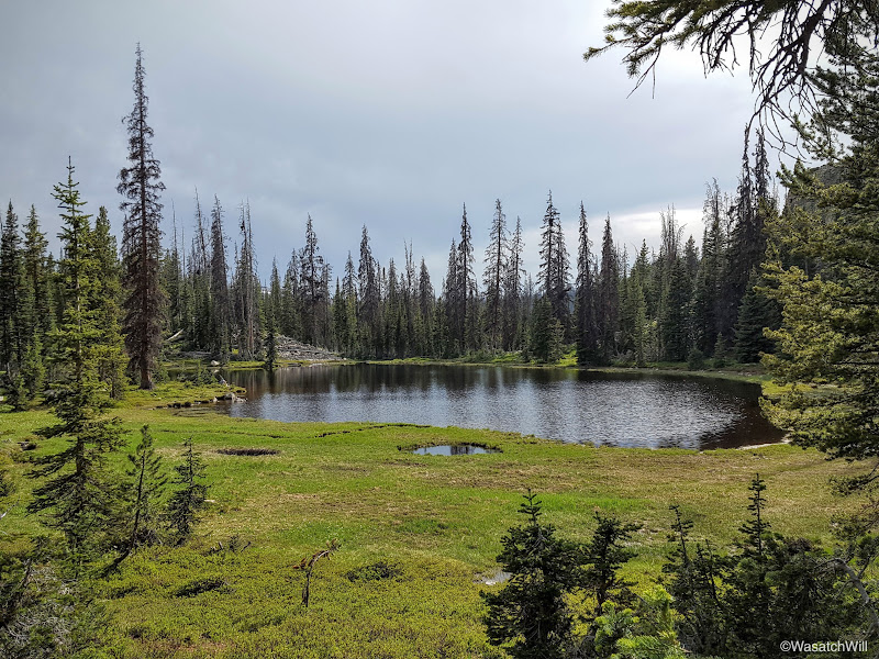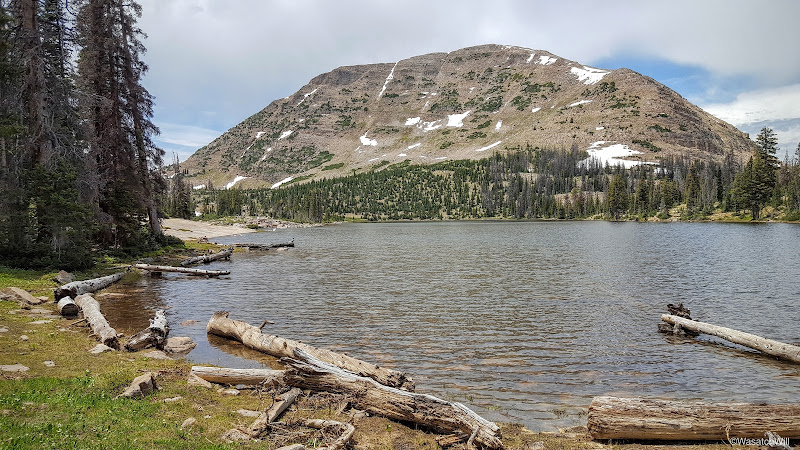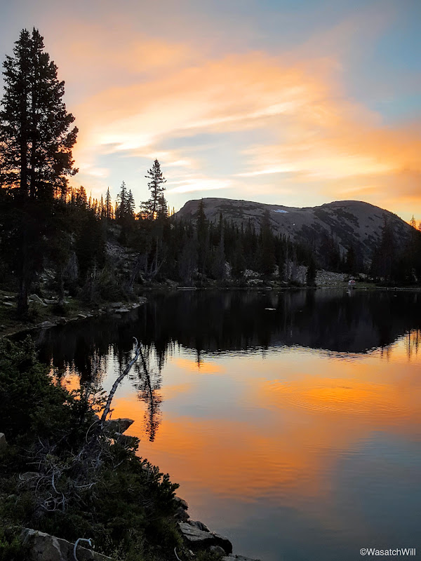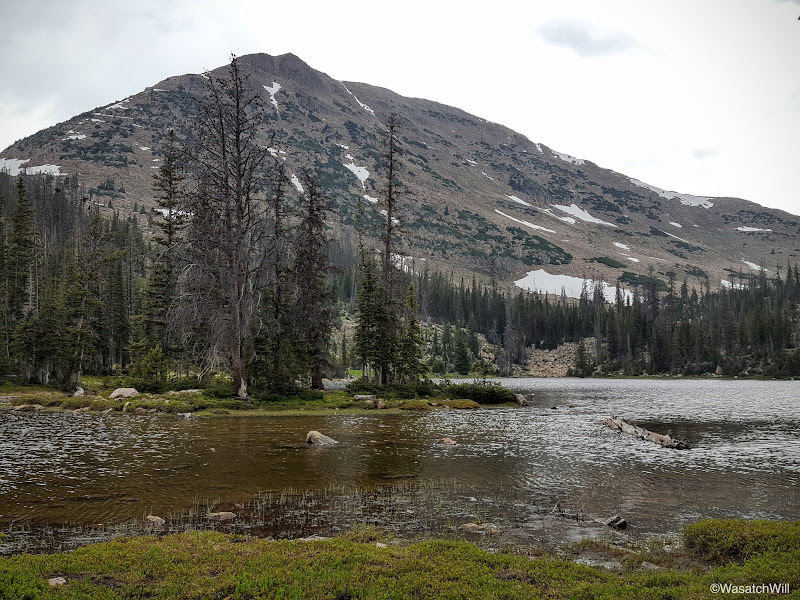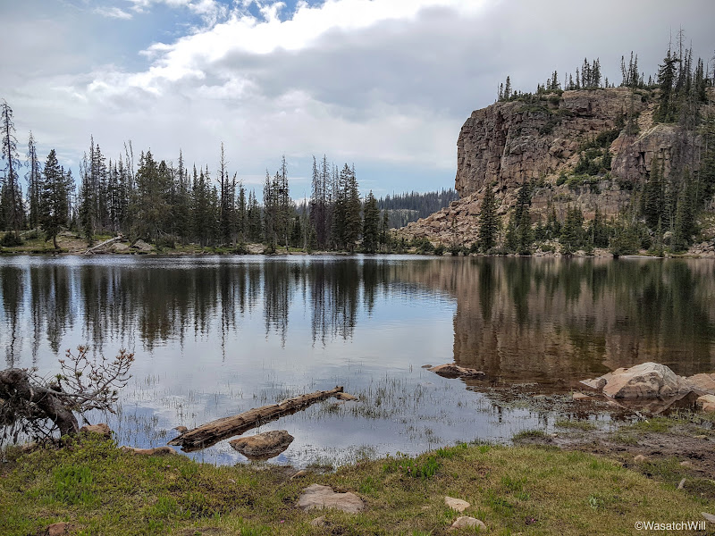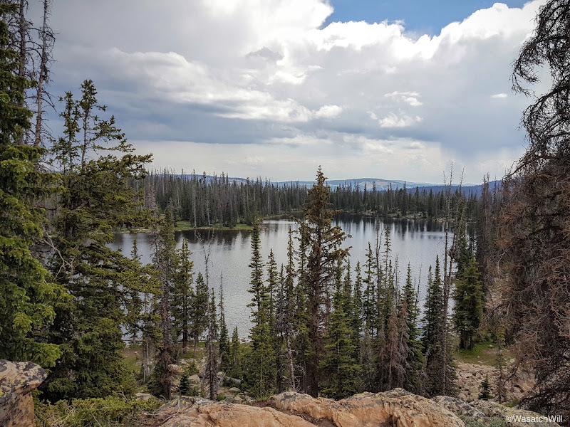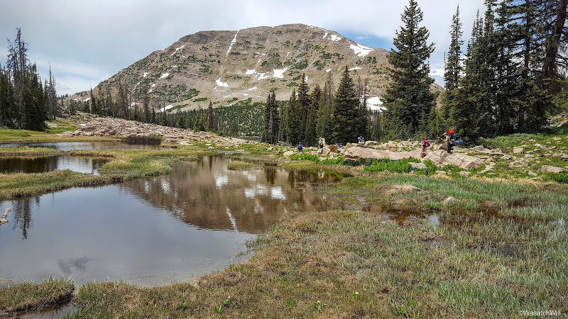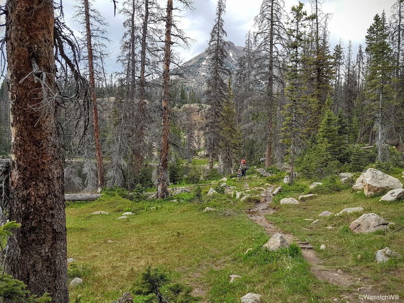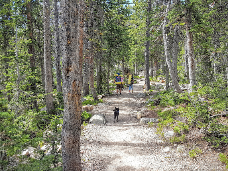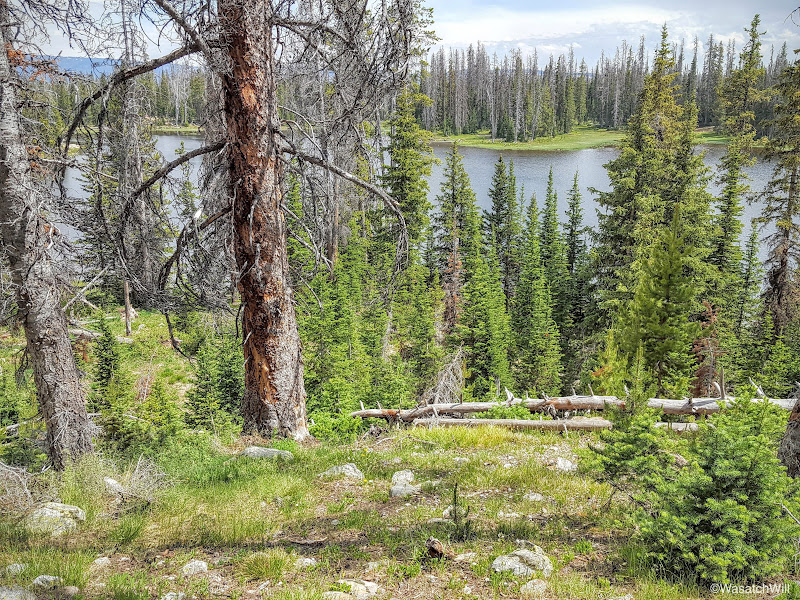 After about a mile of a roller coaster trail, we arrived at the edge of Wall Lake. It's always neat to see the headwaters for the Provo River flowing out of Wall Lake. Not only because of a beautiful little cascading waterfall that begins the river, but because we live in Provo, where the river finishes it's journey as it feeds into Utah Lake.