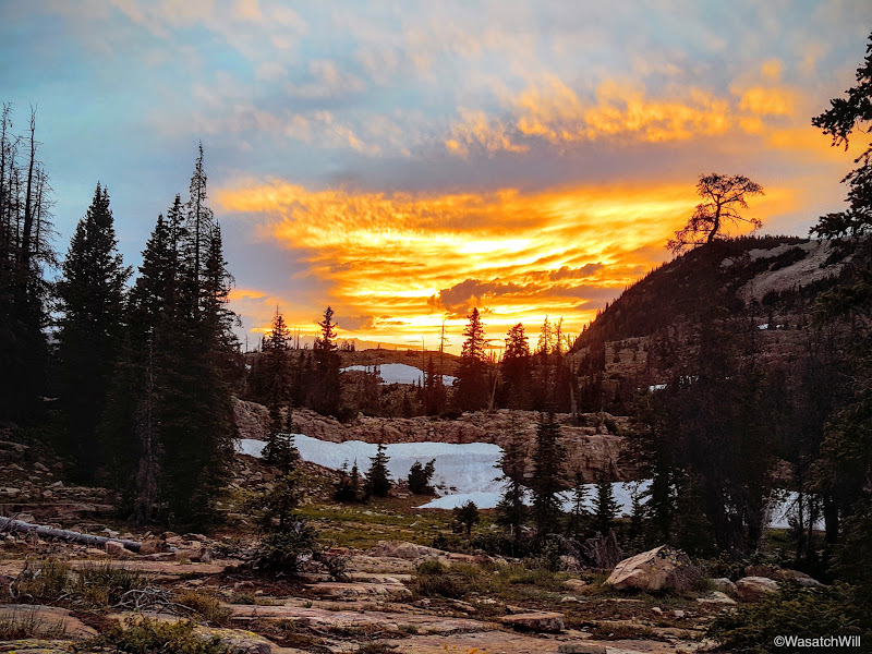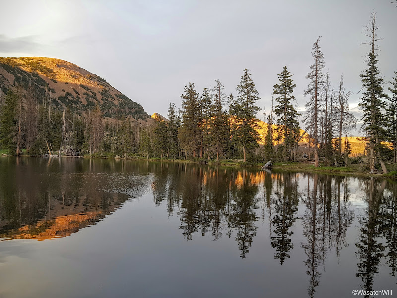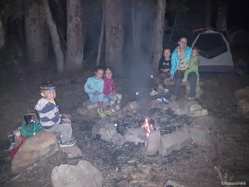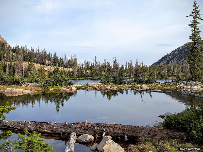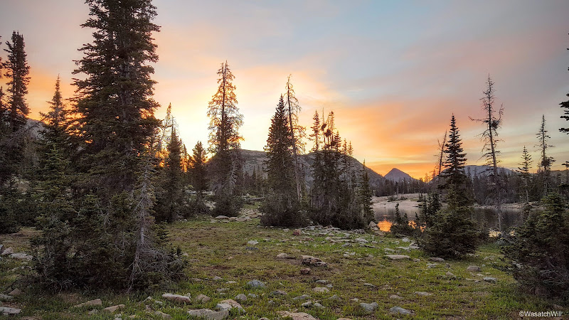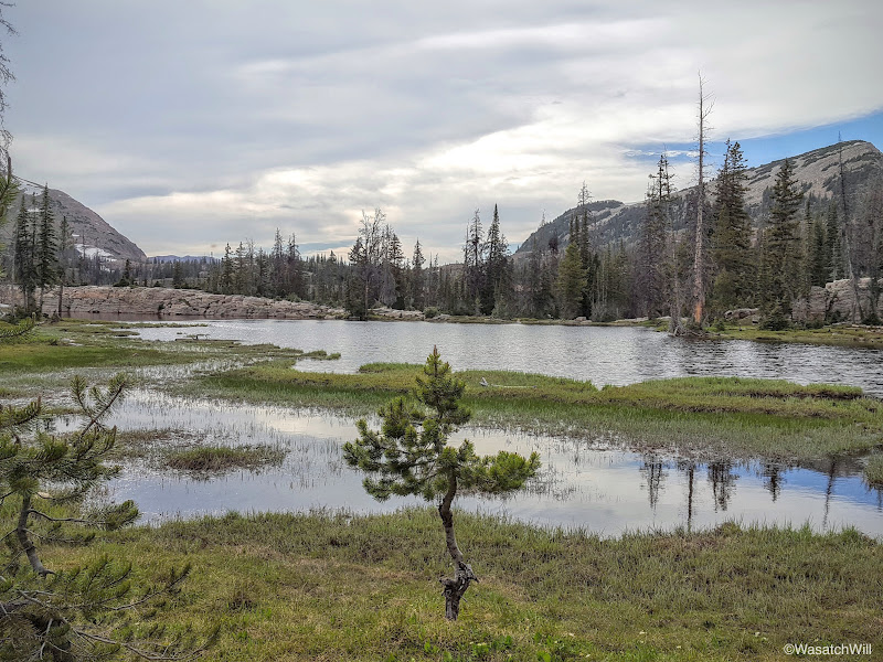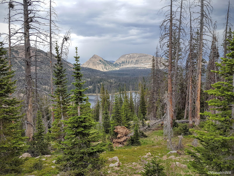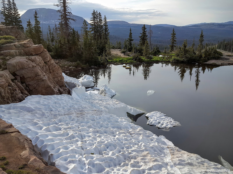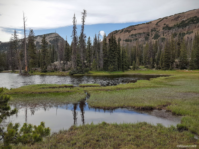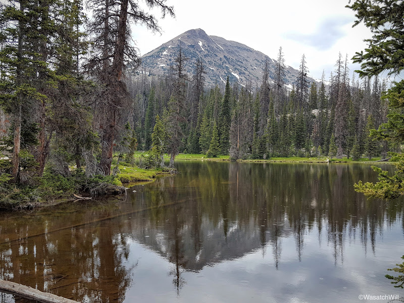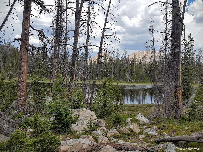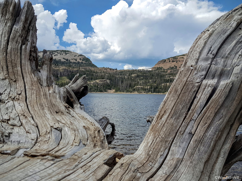 After about a mile of a roller coaster trail, we arrived at the edge of Wall Lake. It's always neat to see the headwaters for the Provo River flowing out of Wall Lake. Not only because of a beautiful little cascading waterfall that begins the river, but because we live in Provo, where the river finishes it's journey as it feeds into Utah Lake.