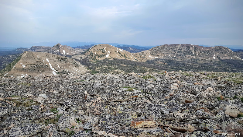 Snack time. Booker Lake, Clyde Lake, Notch Mountain, Reid's Peak and Bald Mountain all visible
