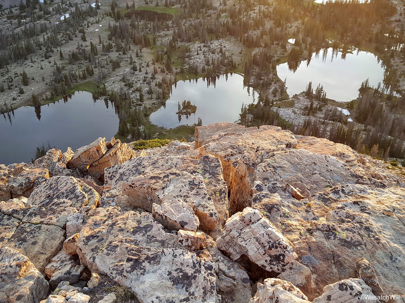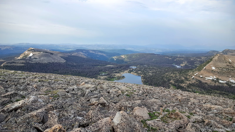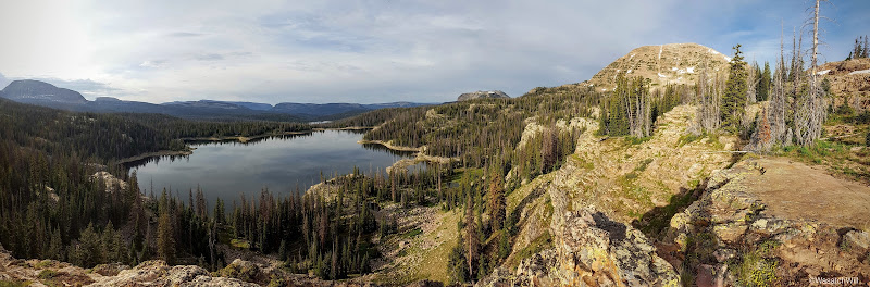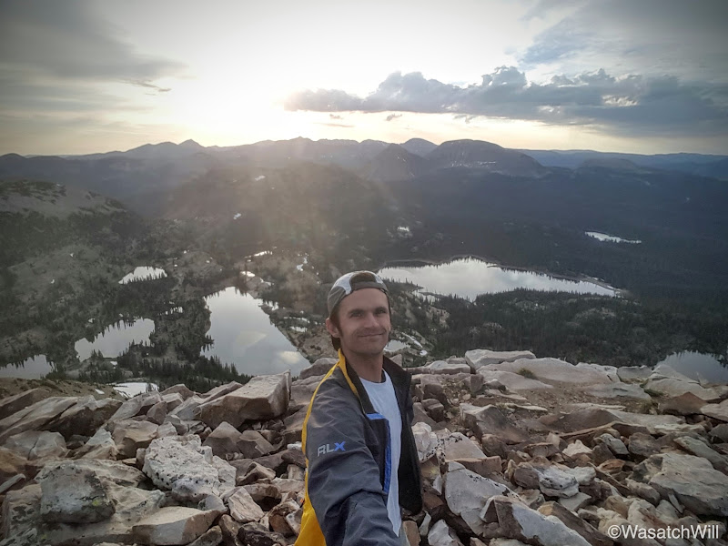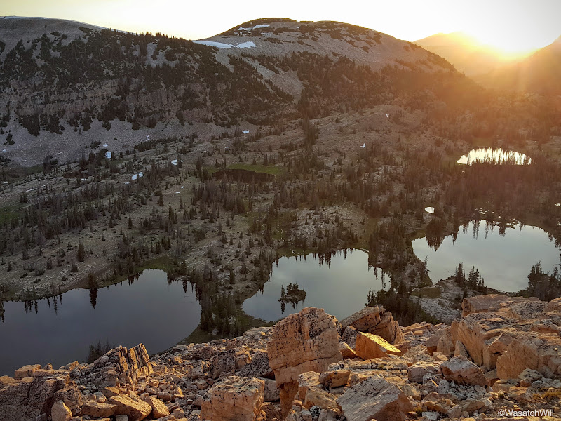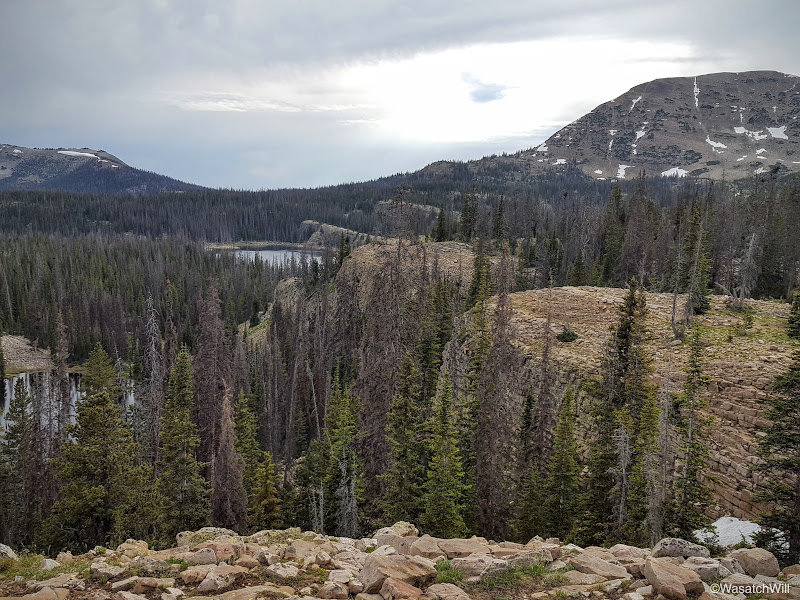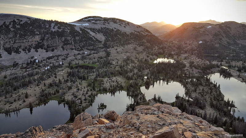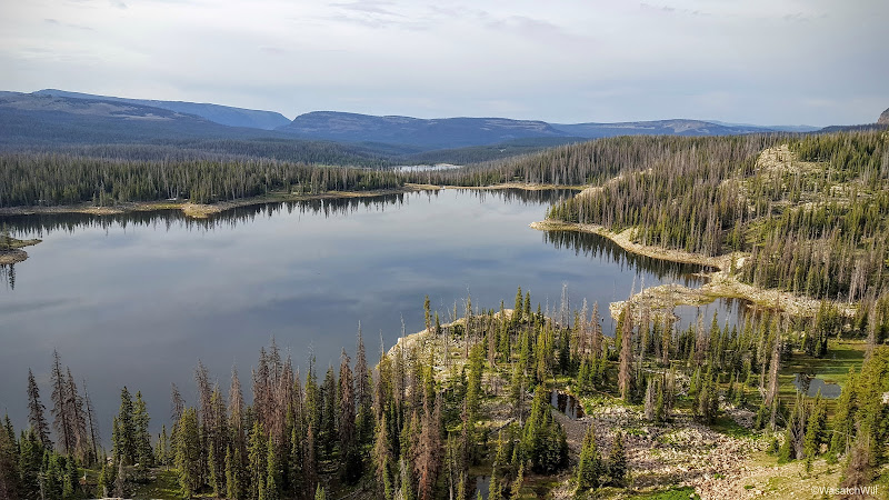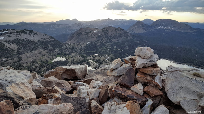 From the summit: lots of lakes and the High Uintas range on the horizon
