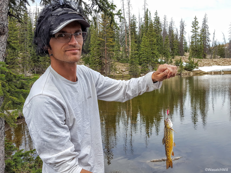 Due to the uncertainty of the weather we didn't stay as long as we had expected to. I still took a few minutes though to see if I could catch any more fish. After a couple casts with a mosquito fly, I pulled up a little brook trout.