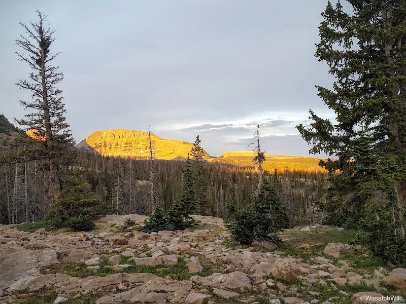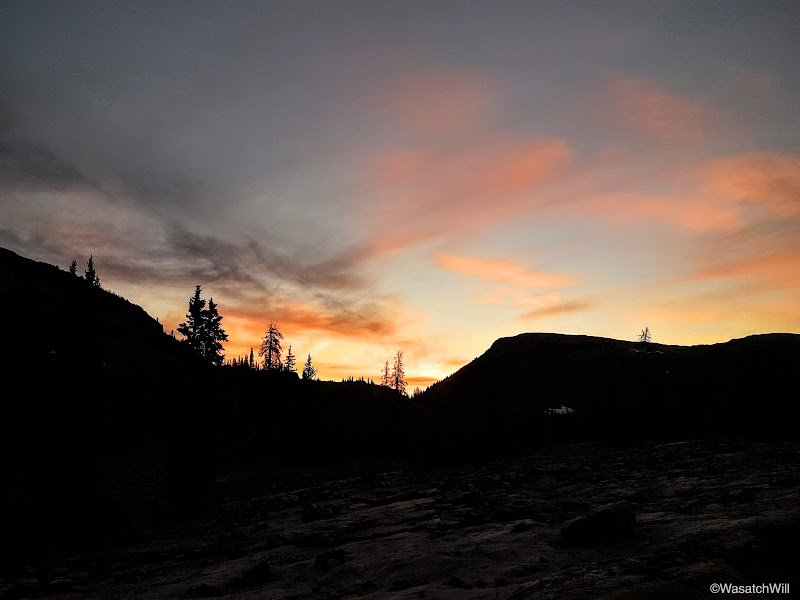 The night before, I had made sure it was ok with Jess if I were to leave camp early in the morning and make an attempt at bagging Mount Watson's summit. Upon hearing that it would only be a little over a mile away, she approved. Now that it was morning, I struggled between wanting to sleep in a bit longer and wait for a bit more light or get going earlier so as to return earlier, possibly before the others awoke. At about 5:45, the clouds began to light up and that was all it took to get me up and going. I quickly changed and gathered my little summit pack and set off for Watson, capturing some photos of the beautiful sunrise as it transpired along my way.