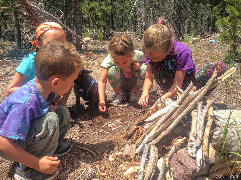 The kids got to wander and explore around a camp a bit while breakfast was made.