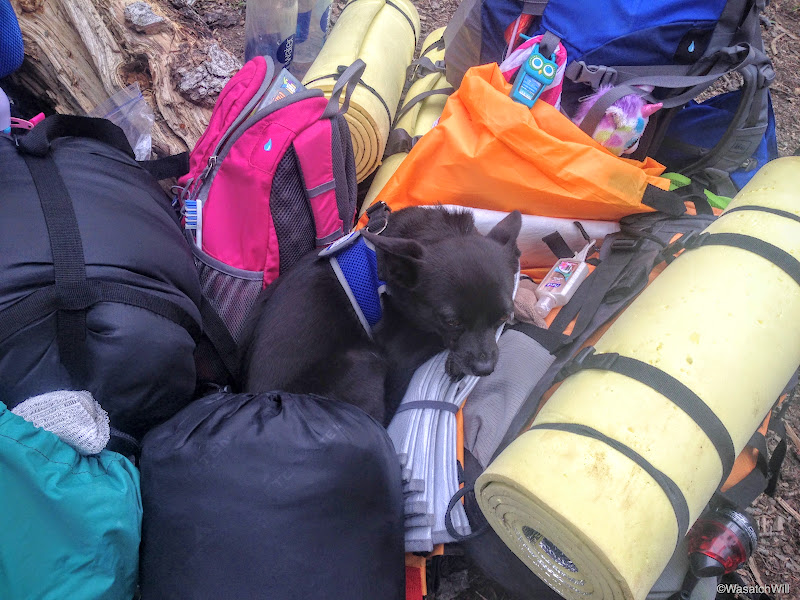 Our dog, Sophie, thought our pile of gear made a good bed for a nap.