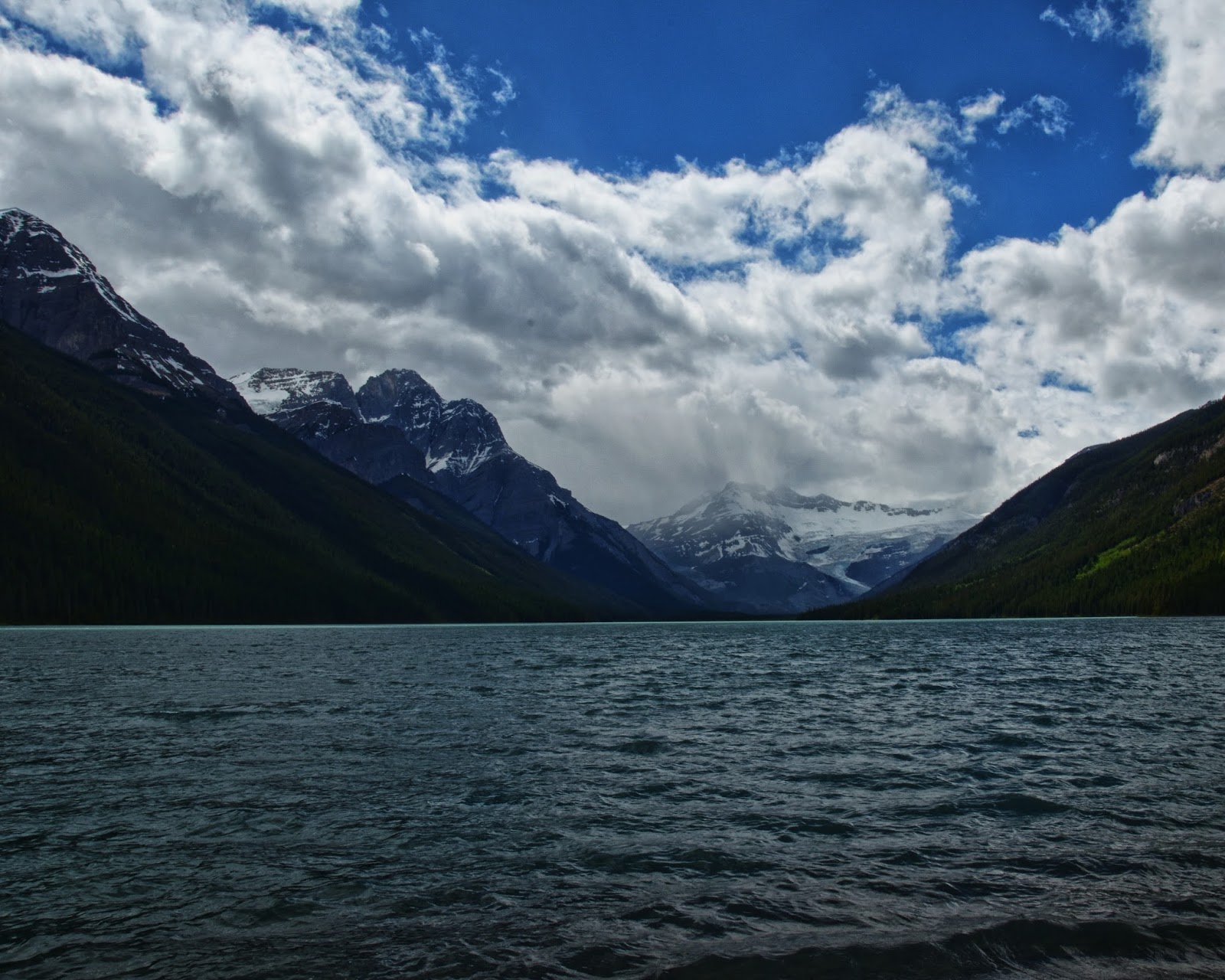 We got back to the car and got sandwiches in the Lake Louise Village and then headed north on the Icefields Parkway to Bow Lake. The view from the pull-off is beautiful and full of tourists getting out of tourbuses.