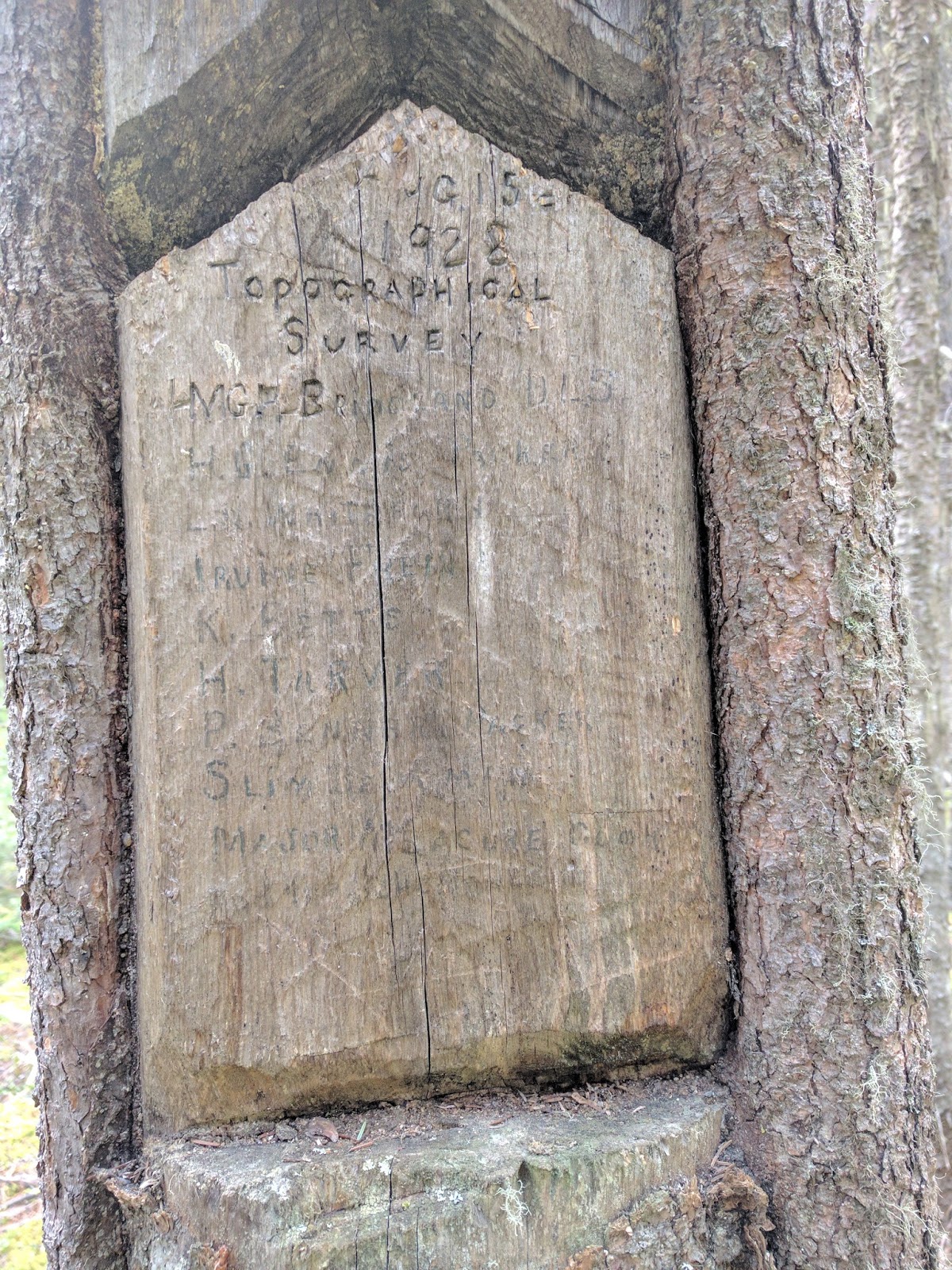 And then back into the forest for more hiking. Off to the side of the trail was this interesting marker/blaze carved into a tree.