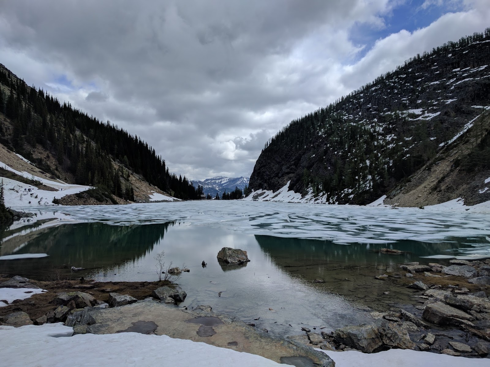 A small lake below Lake Oesa. I think Oesa is buried under all the snow in the distance.
