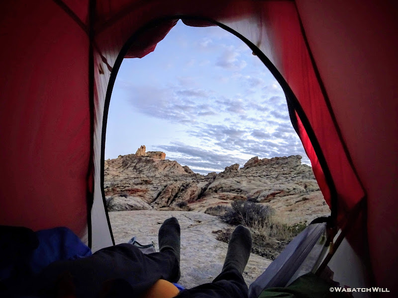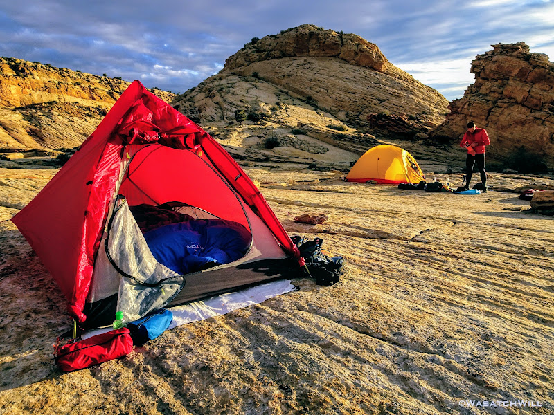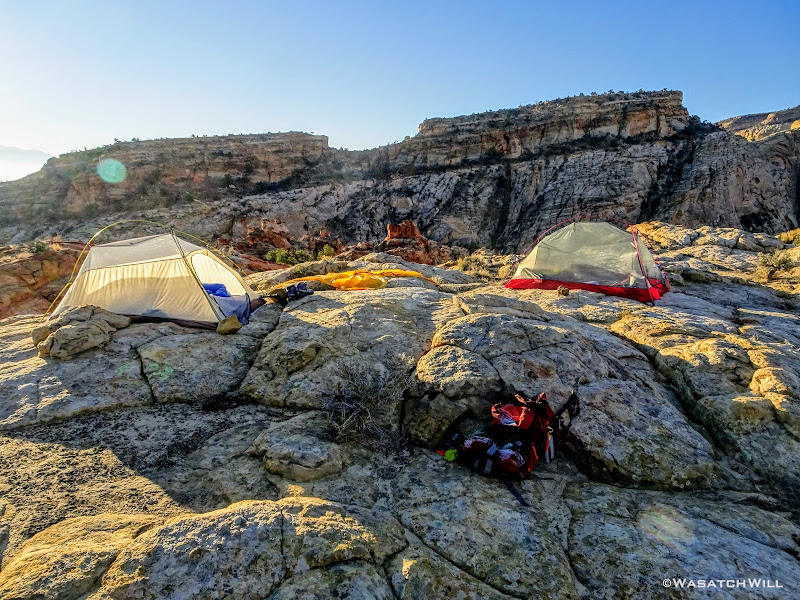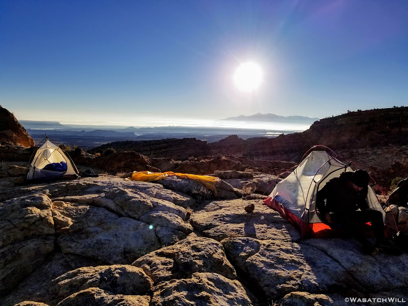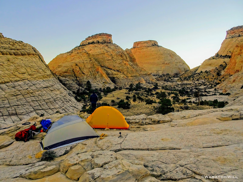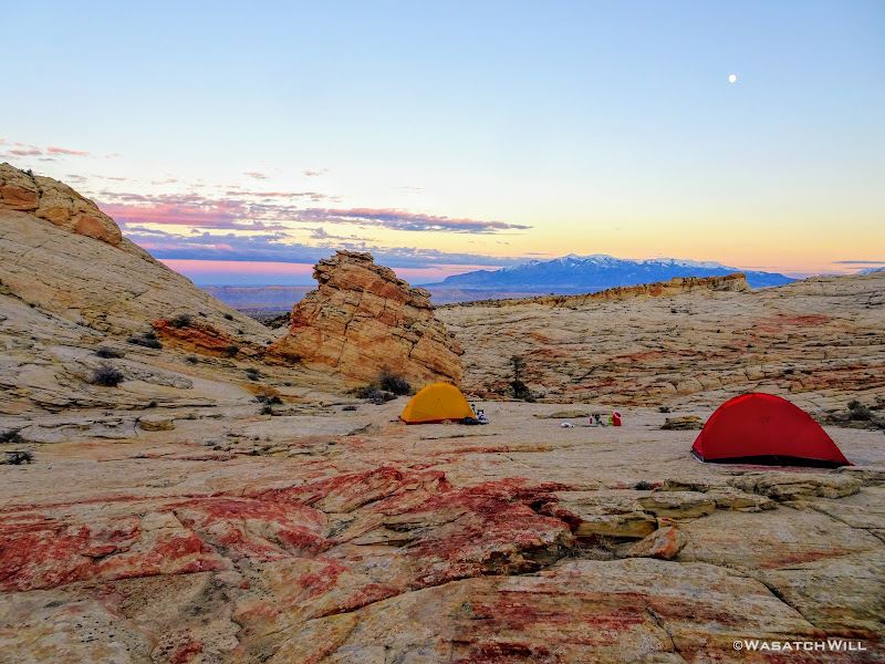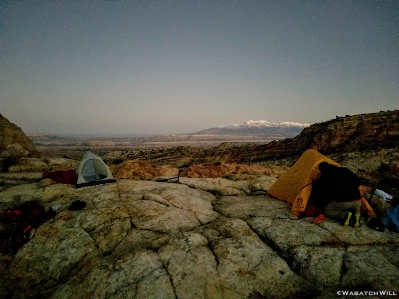 That and we simply couldn't pass up setting up camp with the views we now had, including that of the Henry Mountains out in the distance. From now until the final day of our trip, they'd be a common sight for us out to the east.