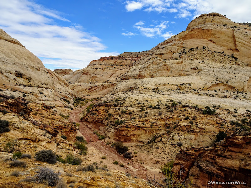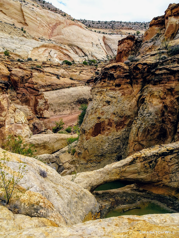 Given the marital connections I now have to the park and my love of the outdoors, it became a personal project of mine to hike and explore and become familiar with at least all the non-technical areas of Capitol Reef. So, a few years ago I had been studying topographic and satellite maps to see if there was any viable, non-technical way to connect Capitol Reef's Grand Wash with Capitol Gorge via through and over the Waterpocket Fold. And then Capitol Gorge with Pleasant Creek. Little did I know, all this had already been done. I had also been making a list of trails and places elsewhere in the park to visit that I had not yet been introduced to in earlier visits with my wife and her family. Having my in-laws retire and relocate to develop some long-owned property they've had in Torrey has only hastened the opportunities to return to Capitol Reef many more times with the regular visits we now make there.