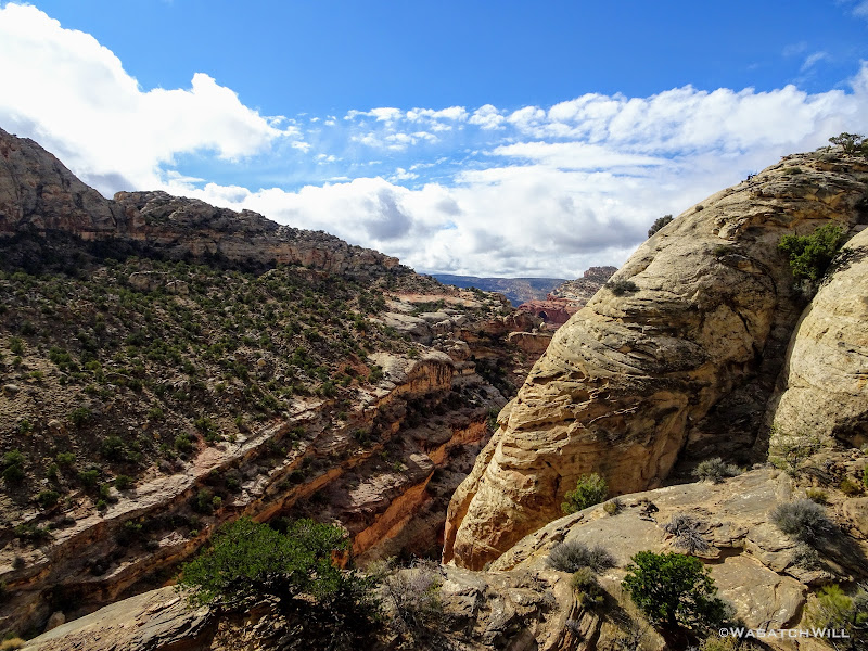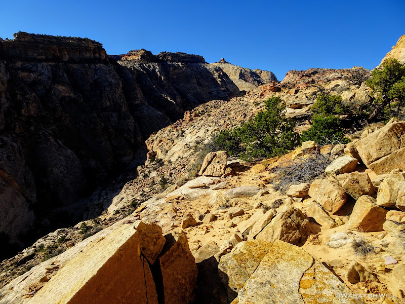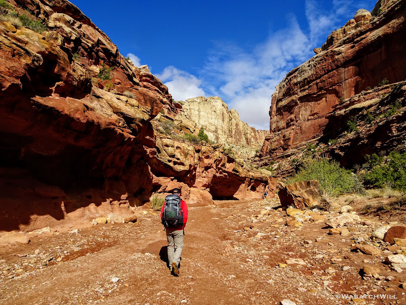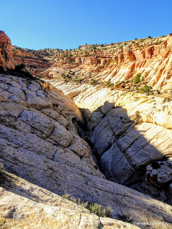 Of course, I turned to Google to see if I could find anything else about this route I'd never heard of as it seemed to follow just the kind of course in which I was thinking I would try to scout out myself. In that search I found Steve Howe's own adventureful write-up he had published for Backpacker years ago about how he came to pioneer this route, which is really quite a good little read! He is, after all, a resident of the small town of Torrey as well, runs his own guiding company there, and thus had plenty of time in his off days to pursue explorations into the more rugged and remote sections of neighboring Capitol Reef and beyond.