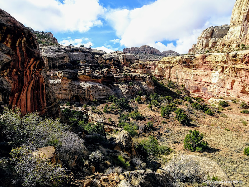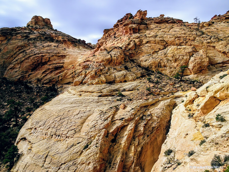 It's course runs mostly off trail and is littered with all kinds of obstacles, as it follows sandstone spines, ridges, cliff sides, dry washes, slots, up and down, up and down some more, through canyon after canyon after canyon. It is so remote that the route passes by and through very few landmarks that even have an official name on maps. To top that all off, water sources can be very scarce along this route, due to long dry spells which are common throughout the year.