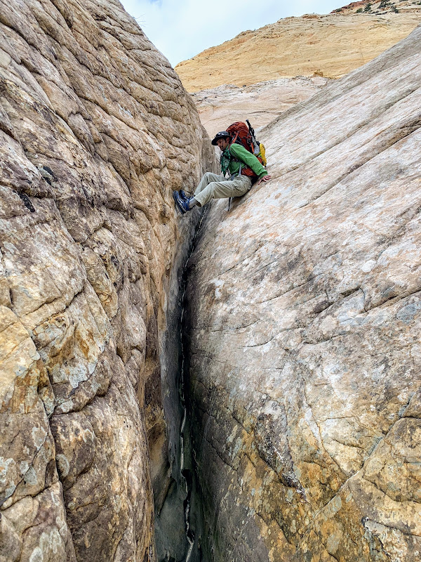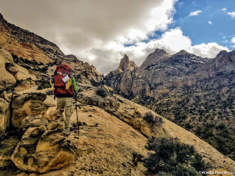 At that same time, I had been searching out some more information on the Internet about some hikes in Capitol Reef when I stumbled into a write-up of the Beehive Traverse route by Michael Lanza on his blog, thebigoutside.com. At the time, access to most all content there was free, but there is now a paywall in which one must activate a paid subscription to access premium content, of which the Beehive Traverse write-up there is now a part of. At any rate, I was sold. There was no map, no gps coordinates or track shared, just lots of pictures accompanied by a great narration of his own journey along the route. He credited his friend and former colleague, Steve Howe - they had both once been regional editors for Backpacker Magazine - with providing the route with some helpful beta.