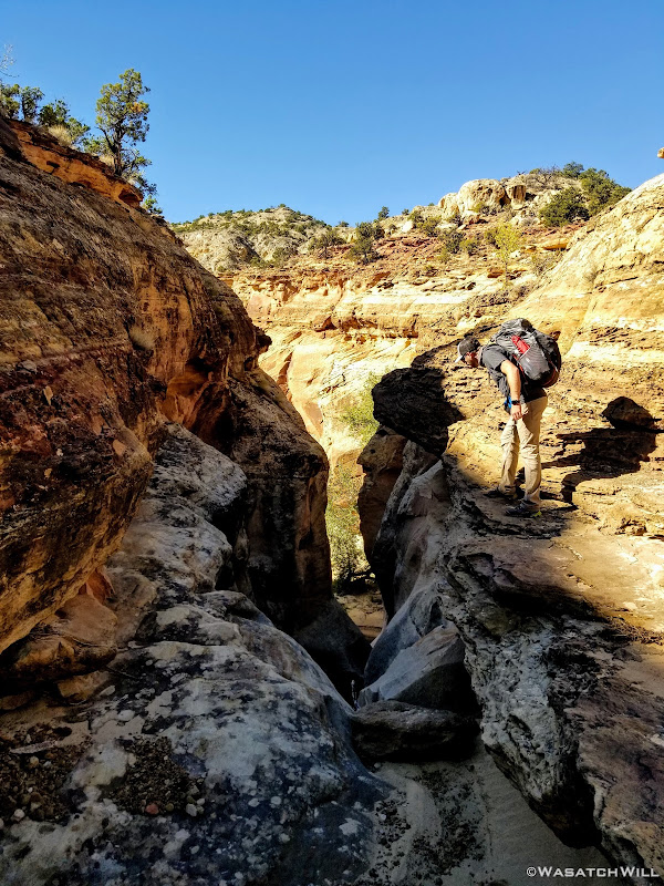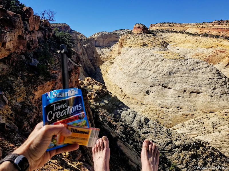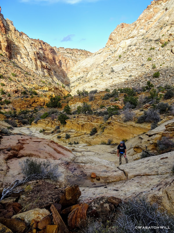 I am also very thankful for all the time and effort Steve Howe put into scouting out all those wild and unforgiving canyons we had just come across in assembling the route and for at one time, trusting the readership of Backpacker Magazine with a map of the route, a time right before social media and things like Instagram made other like locations go viral and explode in popularity, that have inevitably resulted in some negative impacts from less careful visitors who sought after those locations. Had Steve not made that route available when he did, had he not pioneered it at all, had I not been so fortuitous to stumble upon it when it was available online, I may well have tried to figure out such a route all on my own, likely spending years and years in the process, for I am certain, like Steve Howe experienced, I would have hit dead end after dead end before finding something that would work. For the many visits I've been fortunate to make to Torrey, Utah, I've yet to meet Steve Howe and his wife, Jen and hopefully that changes in the near future because I would enjoy the opportunity to thank him in person.