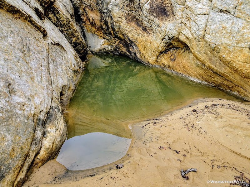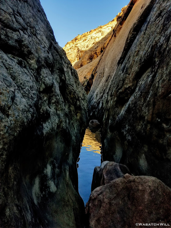 I had hoped to show-off a tributary slot canyon that feeds out into the creek to Devin, the same one I had led Ellory up earlier in June, but for the sake of getting back home to our families sooner, and because clouds were starting to gather again to produce what we expected to be some showers at some point, we mutually agreed to forego it.