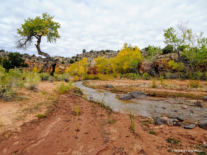 We kept our course, jumping the creek a few more times, wondering when and if we'd ever encounter any rain while the cottonwoods continued to show off.