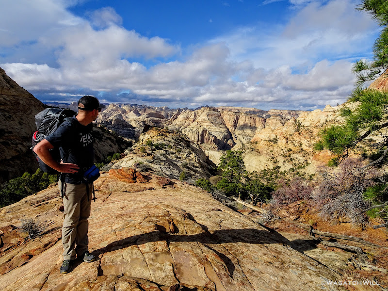 Once we arrived atop the ledge we were targeting and then turned the corner, we were instantly presented with our first of many breathtaking views to come. Now officially off-trail and with Grand Wash now behind us, it was highly unlikely we'd encounter another person for the next two days. On we went...