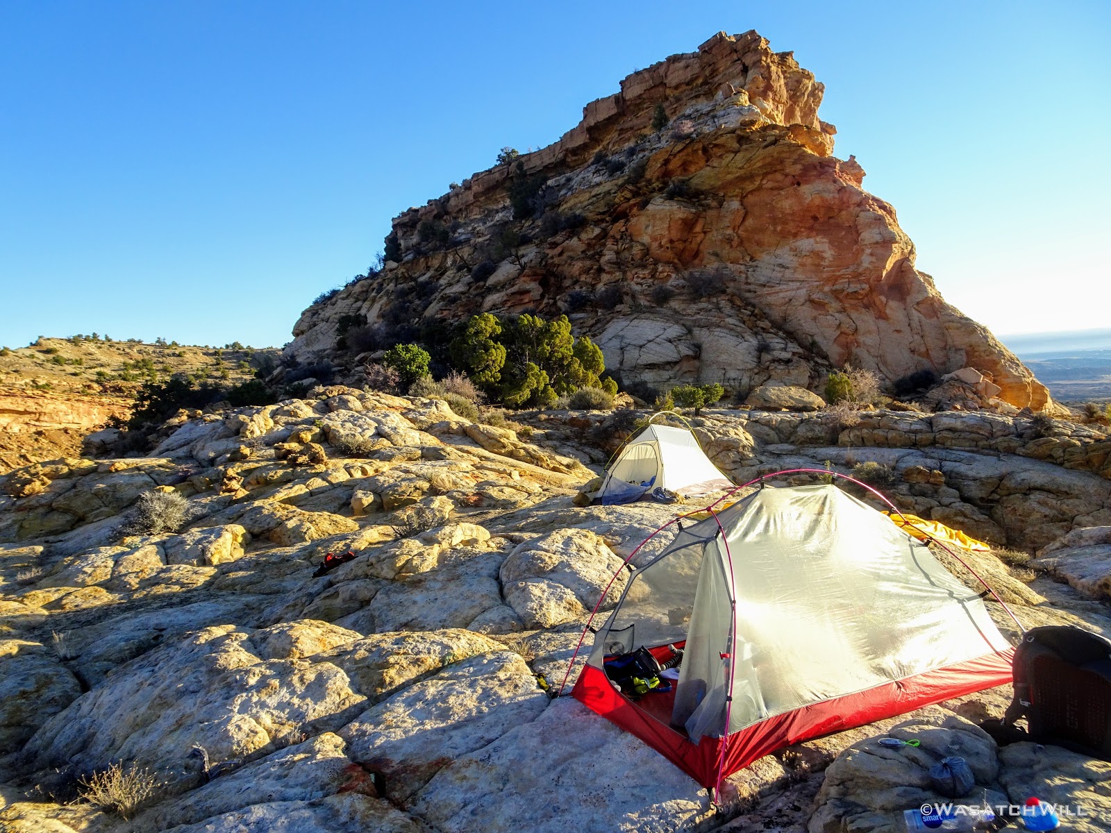 That and we simply couldn't pass up setting up camp with the views we now had, including that of the Henry Mountains out in the distance. From now until the final day of our trip, they'd be a common sight for us out to the east.