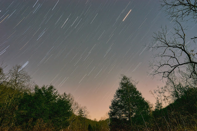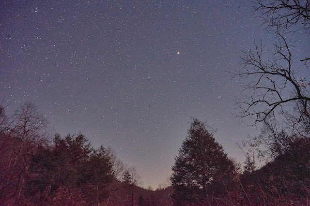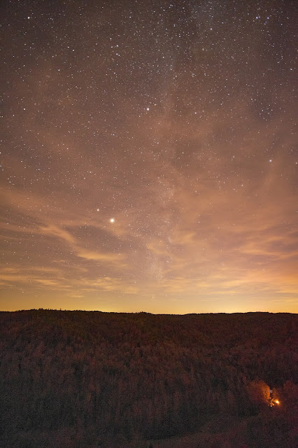 I setup on the edge of the clearing near the creek, gathered wood for a fire and left my camera pointed at the stars for a bit.