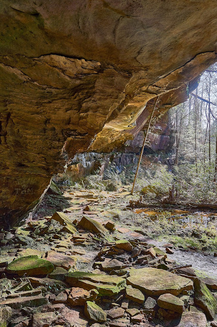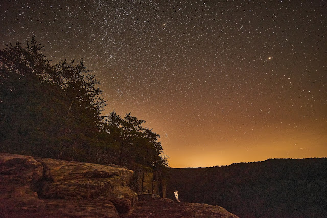 A couple weeks later and my wife said go, so back to Big South Fork. This time I started on the west side on Divide Road. I headed towards the Muir Overlook hoping to find a place to set up camp, but it wasn't going to work, so I headed down to the clearing below.