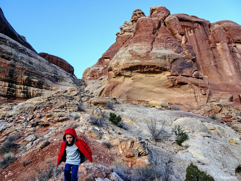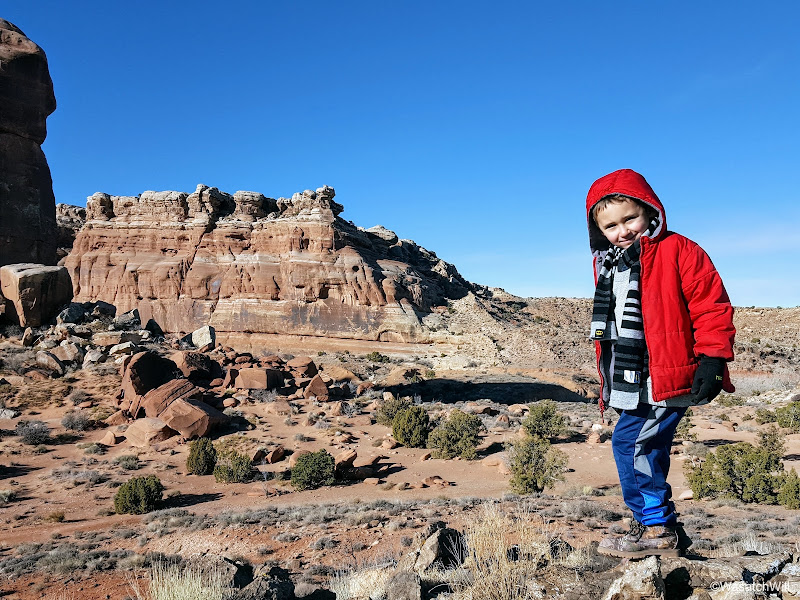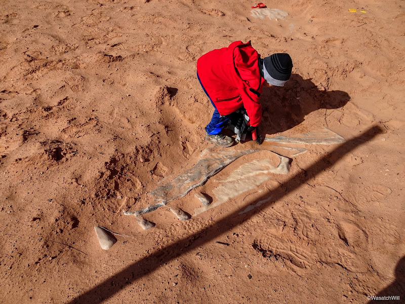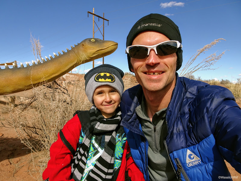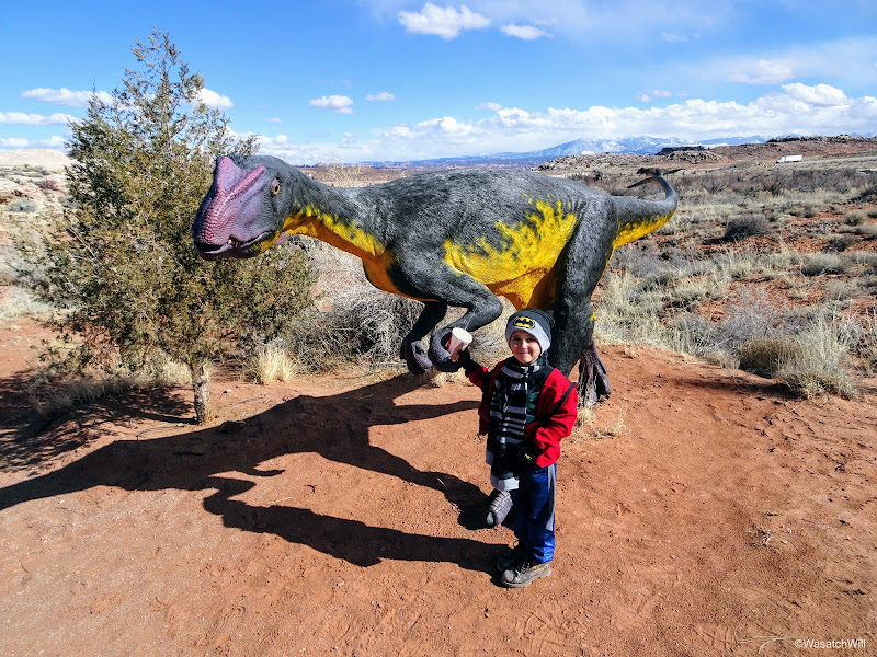 After taking his sisters out for a camping trip the prior month, it was now my son's turn for a camping trip. Since he loves dinosaurs so much, I took him down to the Moab area where we enjoyed a paleontology-themed trip, visiting some dinosaur fossil and track sites, a dinosaur museum and park, in addition to a few other points of interest in the area.