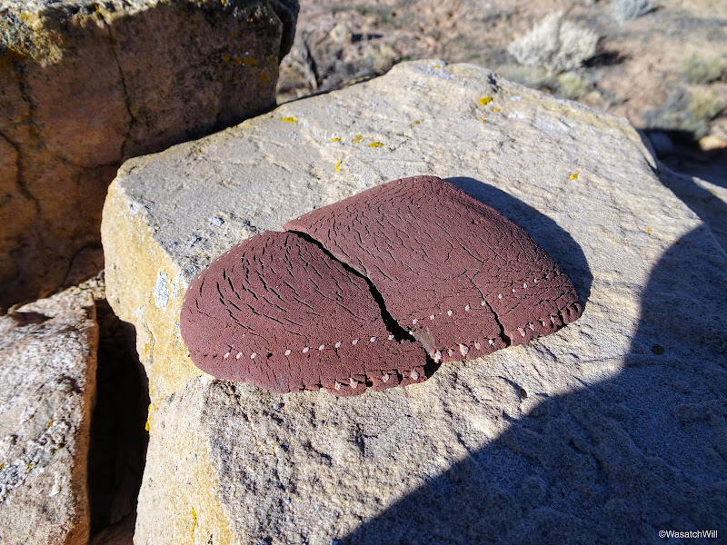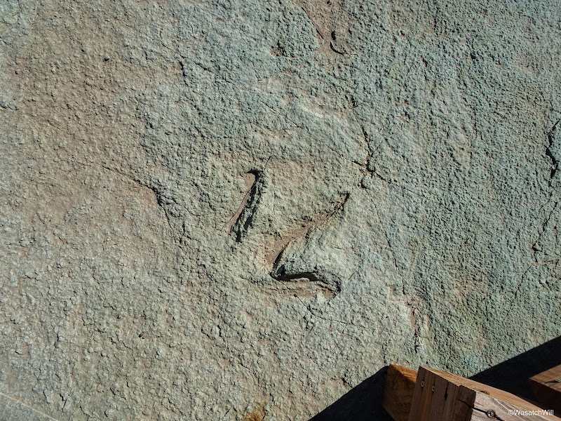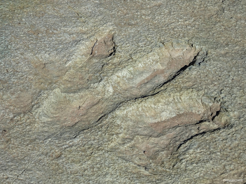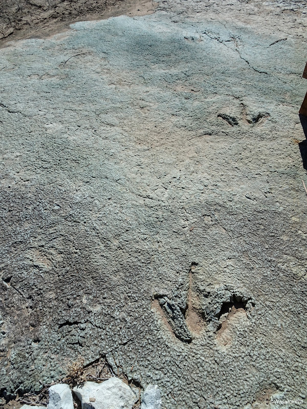 Once back at the car, we broke out a snack and drove back up the road to pull over at another nearby site, the Mill Canyon Dinosaur Track Site. This small site featured an ancient fossilized mud bank where various dinosaur tracks had been preserved.