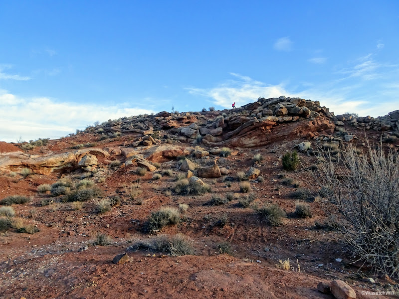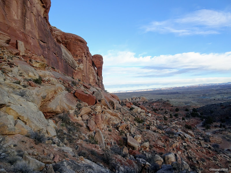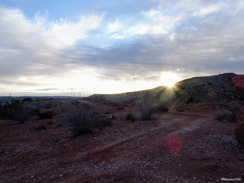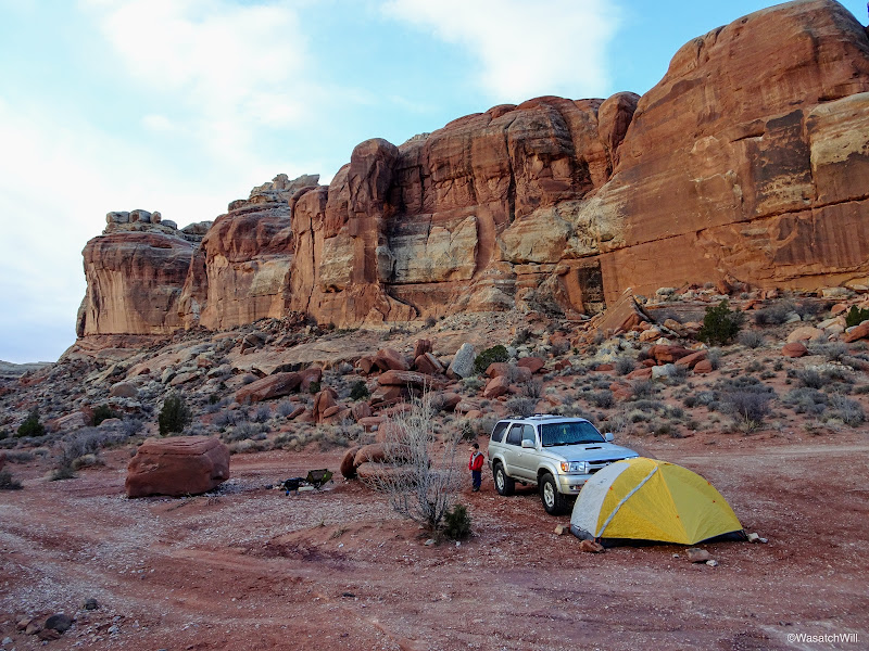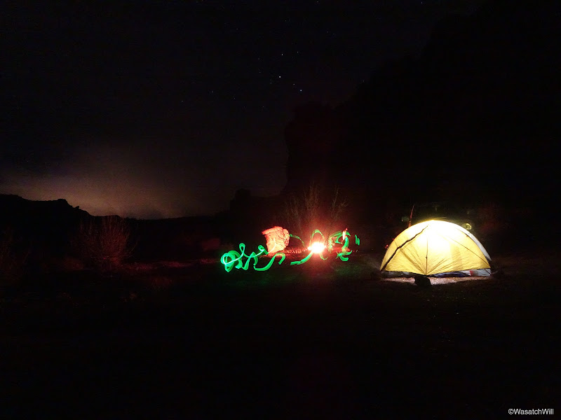 On Monday afternoon of Presidents Day, we made the drive down toward Moab where we pulled over just north of town and found a site on some BLM land that appeared to be OK for camping (other spots along nearby roads had camping restrictions). Nobody else was around and we settled in for the night.
