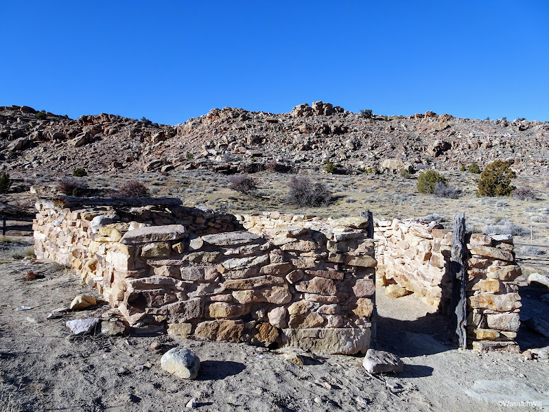 We returned to camp to enjoy some hot chocolate and a Mountain House meal of raspberry crumble for breakfast. Once packed up, we drove down to check out the ruins of a nearby old historic pioneer rest stop that was known as Halfway Station.