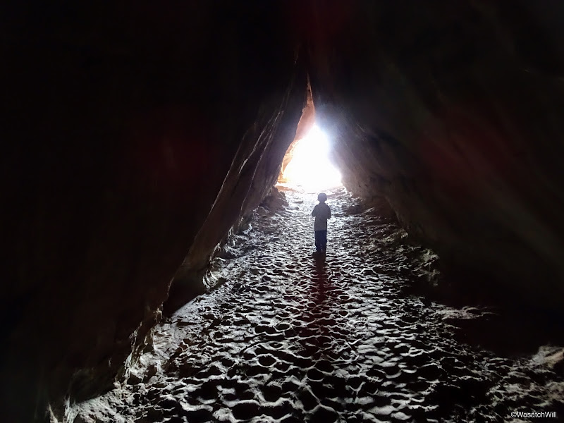 I had no knowledge that it was a true tunnel like feature that went all the way through the rock to a splendid view. It felt like we walked through a portal into another world. Needless to say, we were both very impressed by it. For those who recreate in the area during the hotter summer months, I'm sure this site sees far more people seeking a refuge from the searing sun. I'm sure it also sees plentiful crowds during Spring and Fall Breaks and weekends.