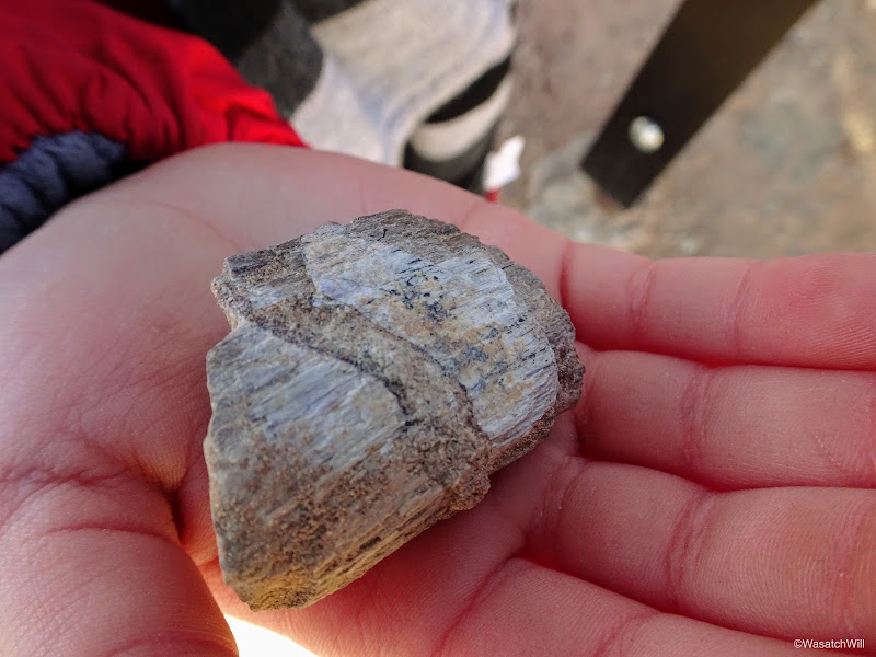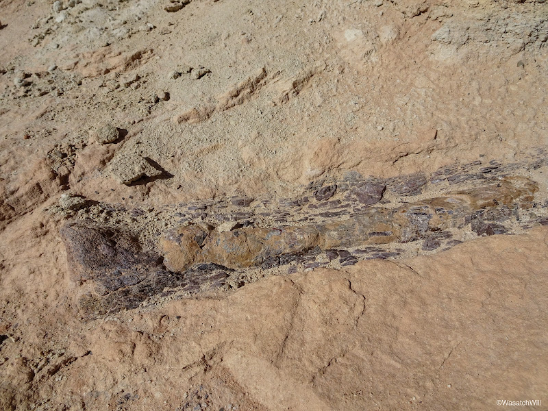 Along the path, Lennox actually discovered what at first looked like a rock partially embedded in some loose soil on the path itself, only to pick it right up and see that it appeared to be another fossilized bone, or perhaps just a chunk of petrified wood that was smooth and round enough to look a lot like a bone fragment. Nonetheless, he was pretty excited about the find and being able to hold it in his hand to see all around it. As tempting as it would have been to keep it, we did the more ethical thing to do at such a site and placed it back where it was found, doing what we could to make it look it was never removed. Still, because it was sitting right in some looser soil right in the path, it's probably only a matter of time before someone unintentionally kicks it out with their foot if their observant eyes don't find it first.