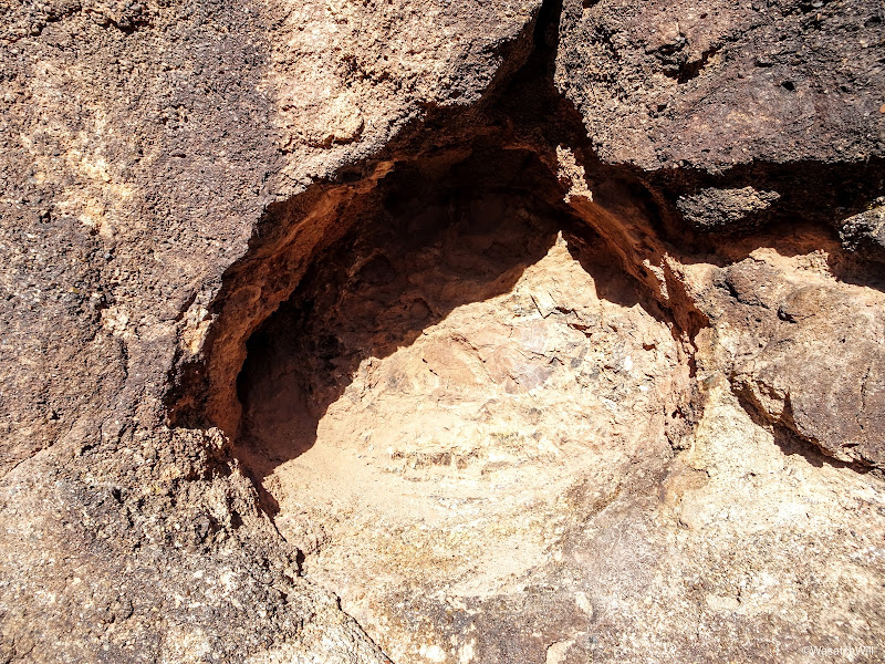 We surveyed the faces of the rock on the other side for any good rock art, but nothing noteworthy of the prehistoric variety was observed. Just a lot of the contemporary variety, aka, graffiti. Back out to the other side we returned.