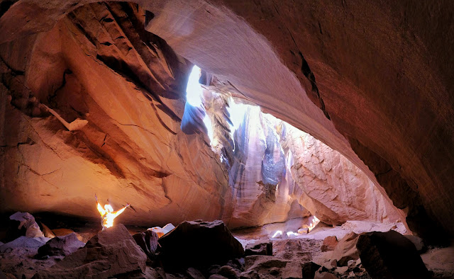 The sun did a spectacular job of lighting up the canyon walls. Sunbeams bounced among the towering and twisted walls filling the corridors with apen-like glow. Arches lurked within the walls and cave-like cathedrals demanded our reverence. It was good to be in a slot canyon again.