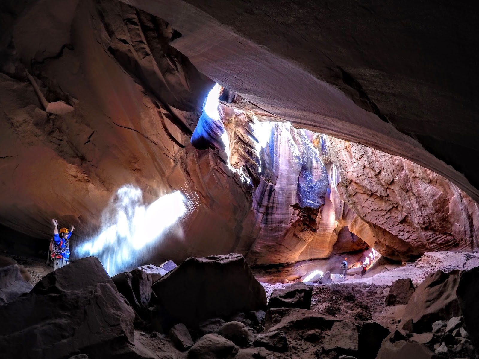 The sun did a spectacular job of lighting up the canyon walls. Sunbeams bounced among the towering and twisted walls filling the corridors with apen-like glow. Arches lurked within the walls and cave-like cathedrals demanded our reverence. It was good to be in a slot canyon again.