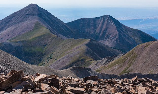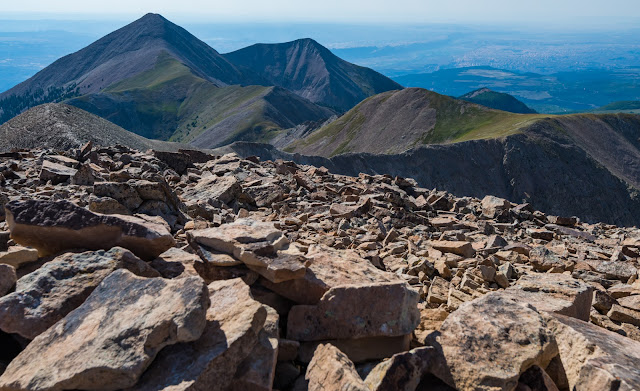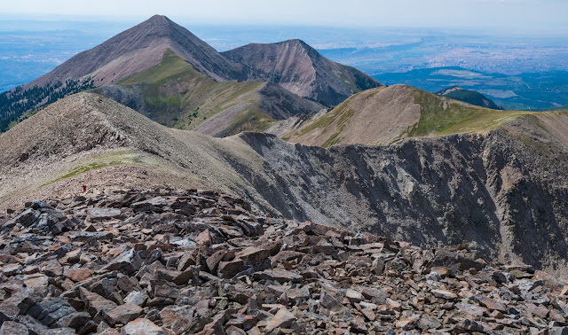 The pictures of Sunlight Peak's upper reaches generally don't convey how large the blocks are throughout most of this upper area - they're human-sized, vehicle-sized, etc. Navigating these massive, jumbled blocks constitutes both the challenge and the fun of this particular summit.