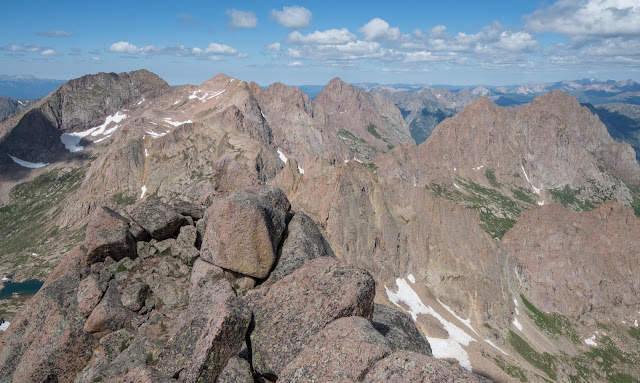 You can see, in these shots the basic idea for navigating the blocks down from the summit of Sunlight Peak; you'd follow the same course on the way up, generally speaking.