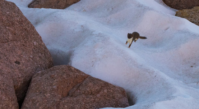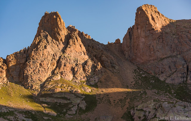 Arriving at Twin Lakes we once again beat the sun's cresting of the dramatic ridgeline, and were also welcomed by our mountain goat friends. I was able to get some lovely pictures of them as the light gradually came into the Twin Lakes area.