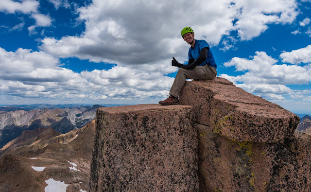 Me, on top of Sunlight Peak (14,059 feet)! The exposure (potential for a dangerous - in this case deadly - fall) was so crazy up here!