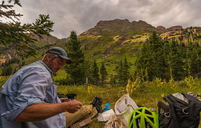 Enjoying a nice dinner under mildly-threatening skies before we tore down our camp and headed down to the Needle Creek junction area to make camp for the night.