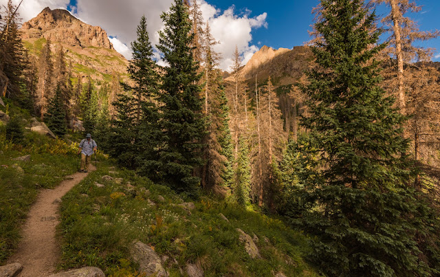 Dave, coming through some thicker forested areas as we get nearer to our camp in Chicago Basin.