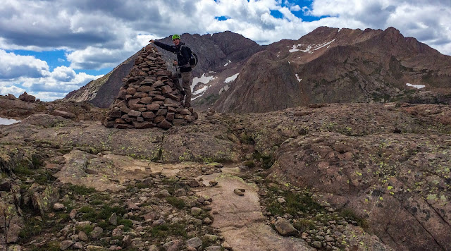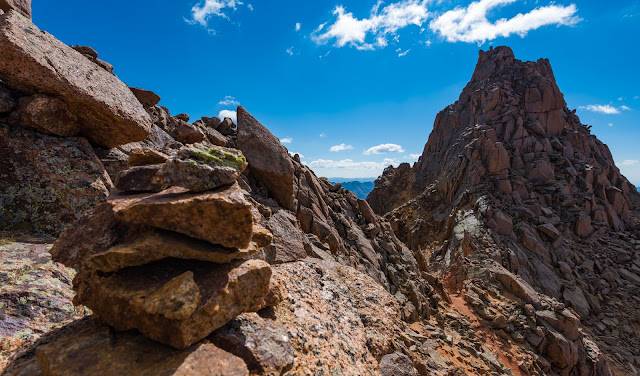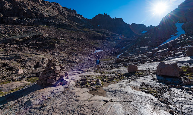 Another massive cairn as we traverse across the section of "boiler plate" rock. We're aiming for that saddle ahead...and it's a lot steeper than it looks there...