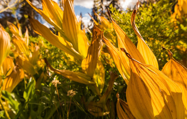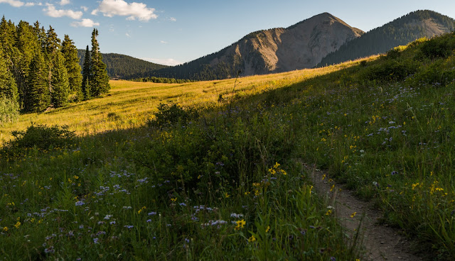 Coming back through the flower-laden meadow toward South Mountain and the car. I was a bit surprised with how many flowers there still were at this stage in August up at this elevation, but the late-snow season probably pushed their blooming time back a number of weeks. Broad fields of wildflowers are a lovely treat whenever you can find and spend some time with them.