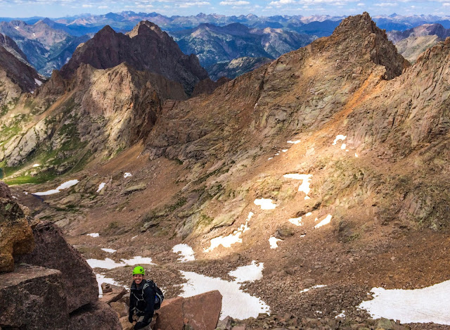 Descending Windom Peak, Sunlight Peak is in the upper-right here. (Photo by Dave)