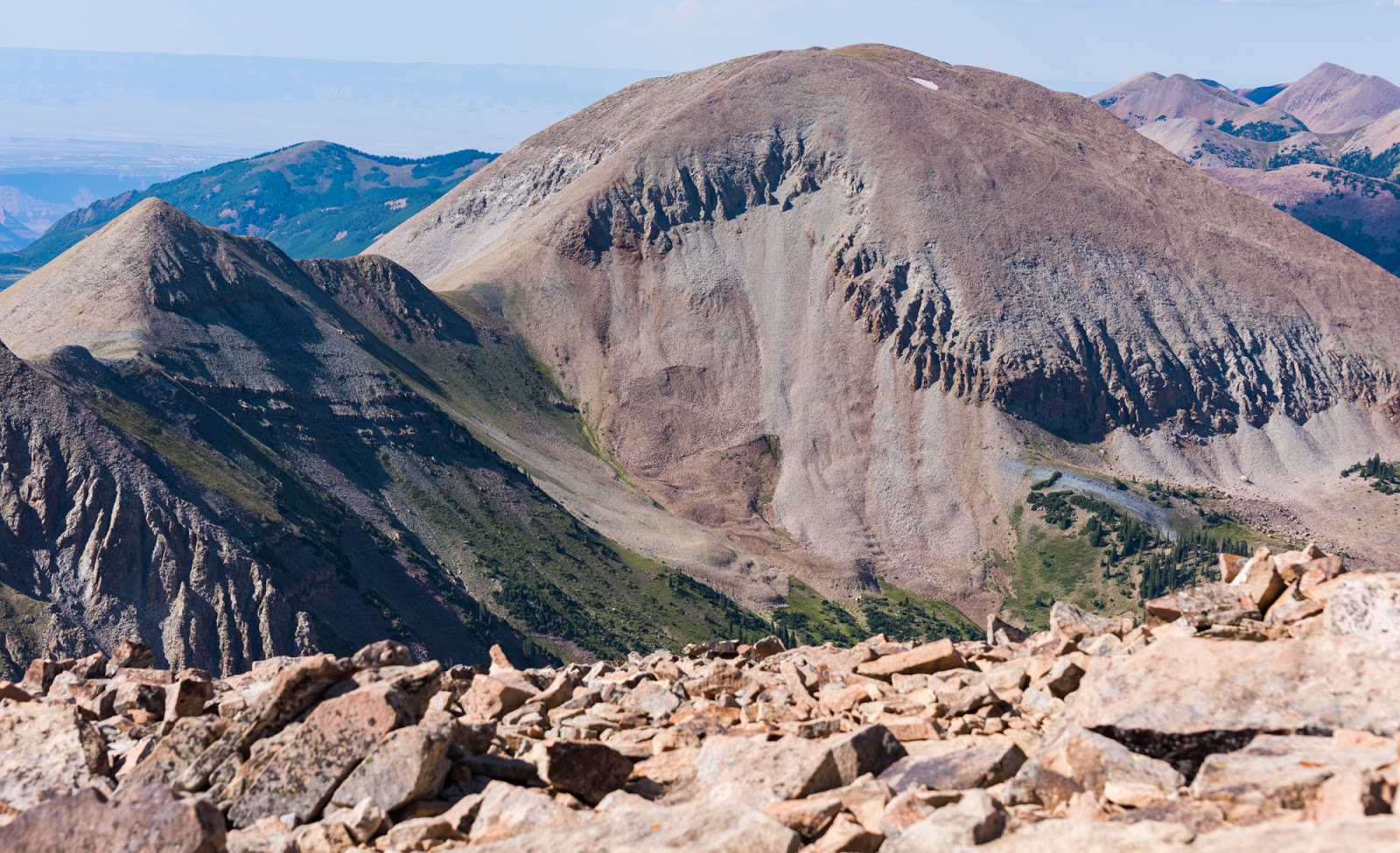 Big, open country way up here above treeline. Mount Tukuhnikivatz (12,482 feet), the range's third highest point, is in the top left here.