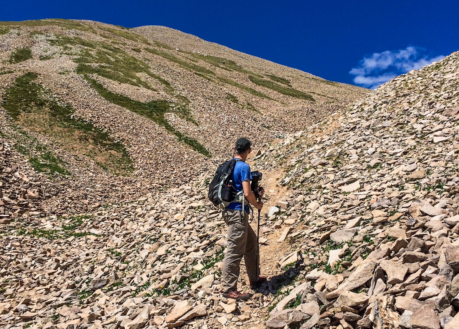 Me, continuing up the big gully as we ascend Mount Peale. (Photo by Dave)