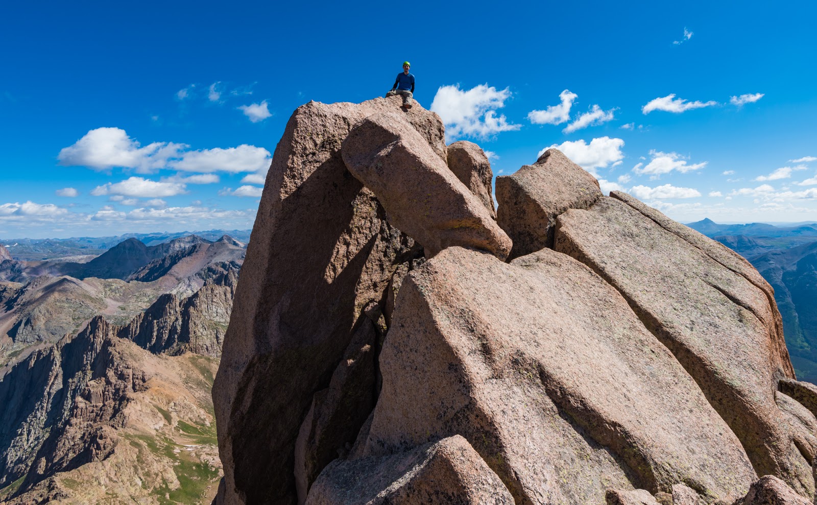 Epic terrain seen from the summit area of Sunlight Peak. Mount Eolus and North Eolus are the two peaks adjacent to each other in the upper-left.