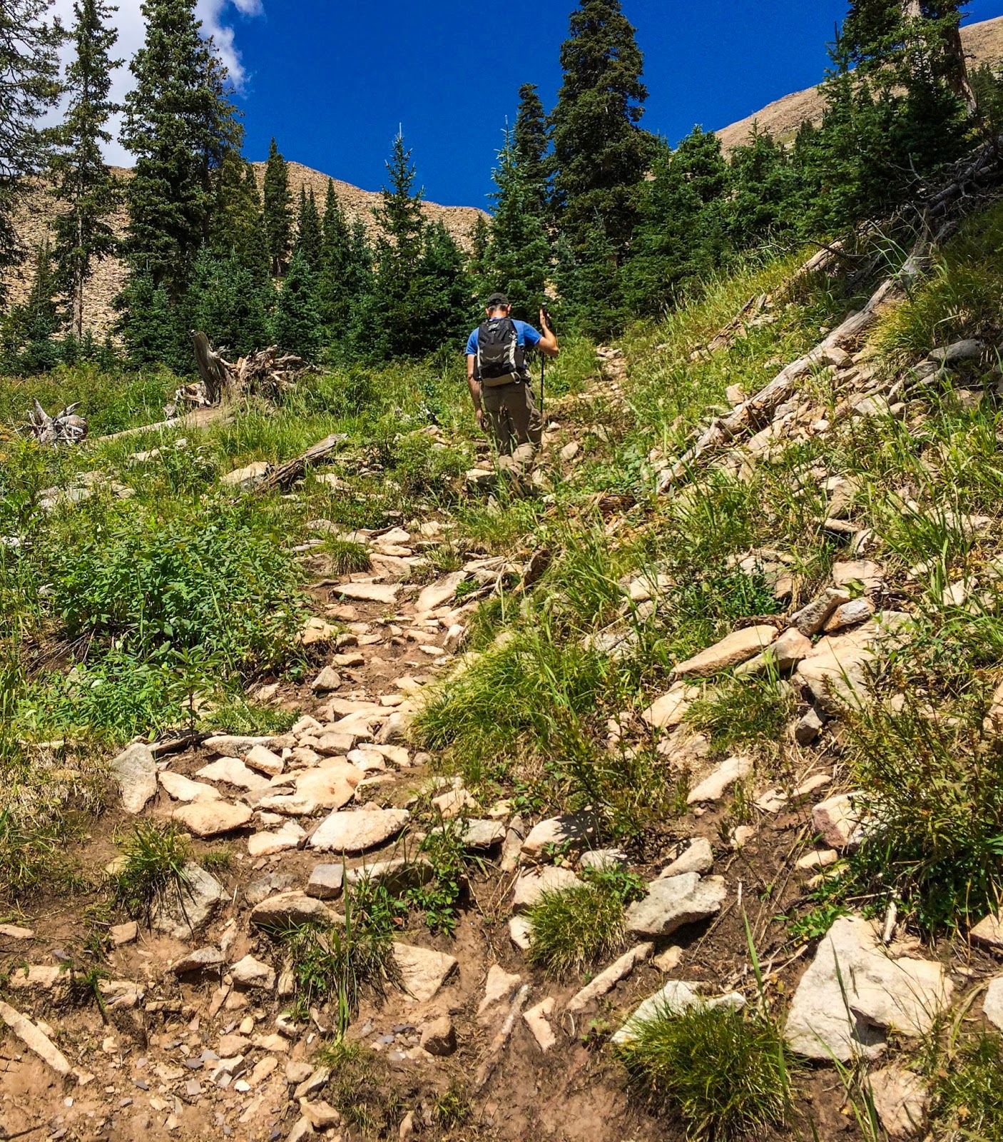 Dave, coming through some thicker forested areas as we get nearer to our camp in Chicago Basin.